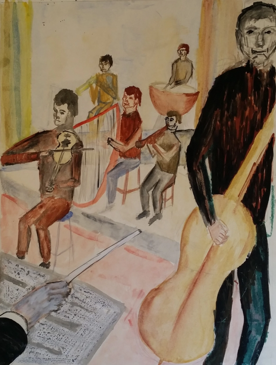 Fourth Year High School artwork – watercolour on cartridge paper, 22 x 15″
