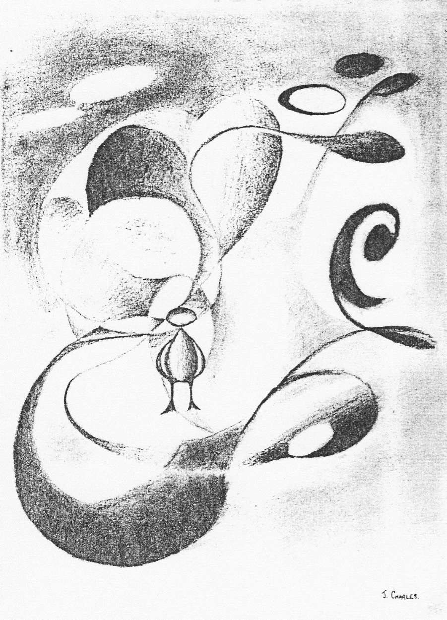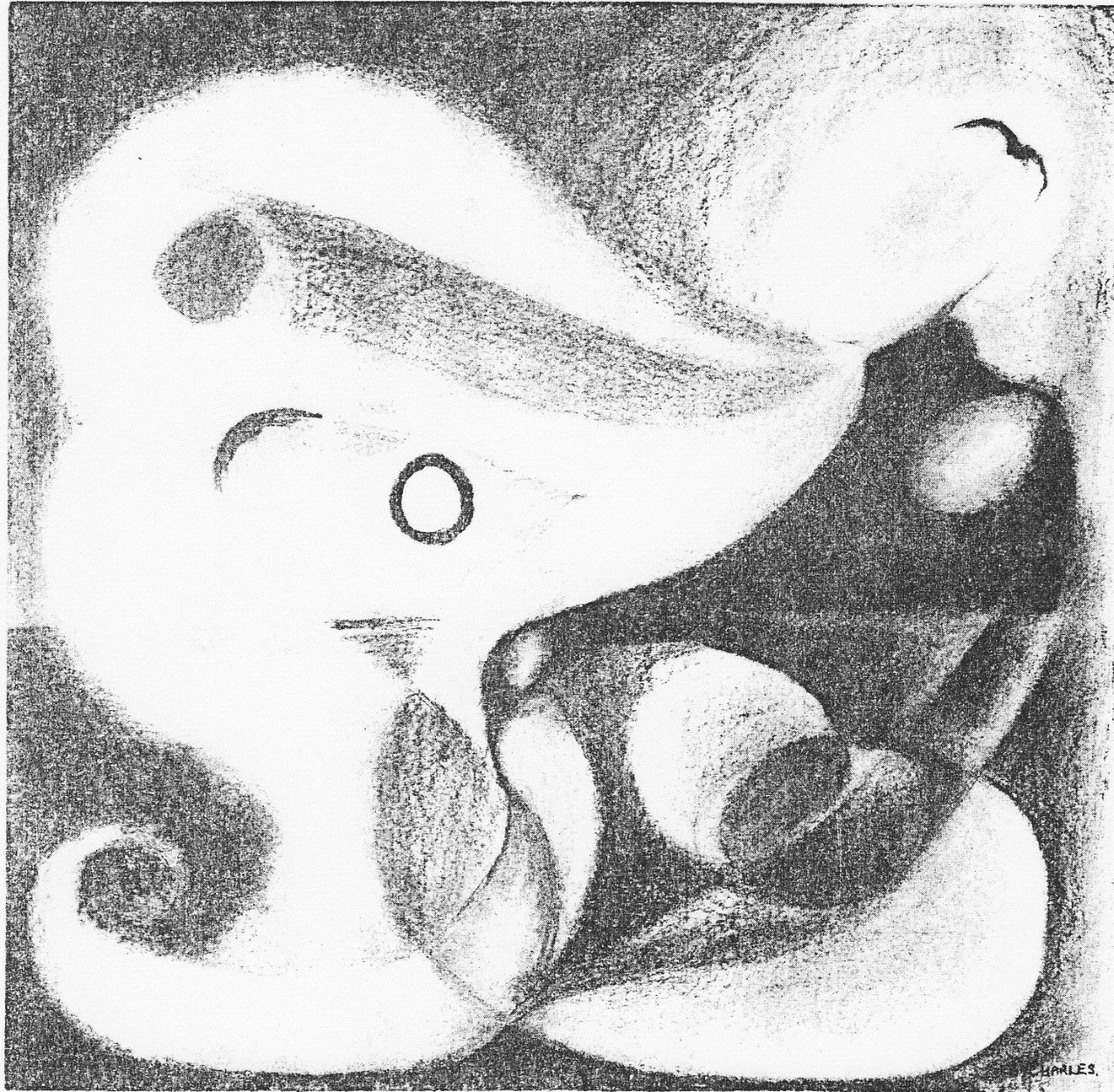 Illustration for High School Yearbook – original was conte on paper, 22 x 15 inches, since lost, this image was taken from the yearbook
